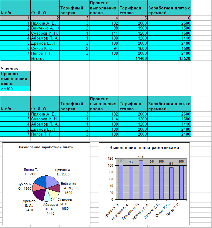 Результаты выполнения практической части работы находятся в файле «работа2.xls», а также приводятся ниже.