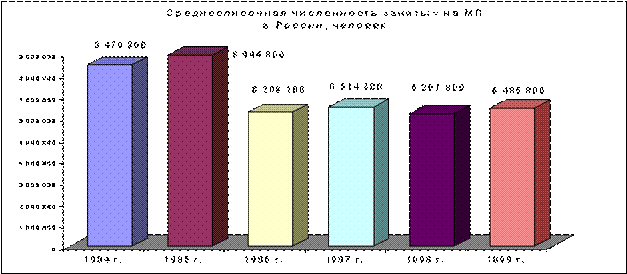 Общее число постоянно работающих на малых предприятиях к началу 2000 года составило порядка 6 млн. 486 тыс. человек или 10% от общего числа работающих на российских предприятиях (см. диаграмму 2). По сравнению с 1994 годом данный показатель сократился на 23,5%. Это закономерно, так как критерии определения МП, принятые в 1995 году, в 2 раза уменьшили допустимый порог числа работающих на малом предприятии.