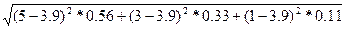 = 5*0,56 + 3*0,33 +1*0,11 = 2,8+0,99+0,11 = 3,9%.