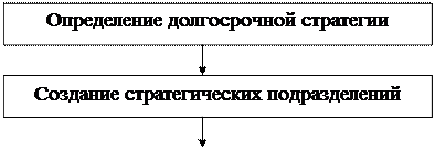 В процессе стратегического планирования общие или главные цели фирмы устанавливаются высшим руководством и согласуются со всеми подразделениями. Плановые службы предлагают каждому производству варианты первоначальных показателей валовой и чистой прибыли на долгосрочный период. После их рассмотрения подразделения выдвигают свои предложения, тем самым создаются необходимые предпосылки для выработки общих целей стратегического планирования. В утвержденных планах предусматриваются общие цели фирмы, ее место на региональном рынке, организационная структура управления, кадровая политика, производственная стратегия, выбор новой продукции, общая политика сбыта, финансовые результаты, политика поглощений или приобретений, объем инвестиций и т.д.