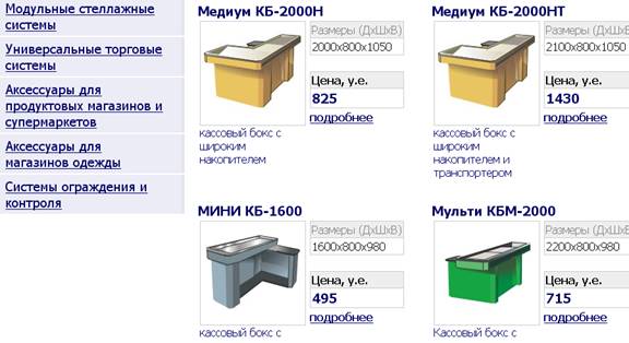 1. На сайте http://www.alekc.ru/info-30-1.htm представлено выставочное и торговое оборудование.