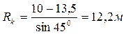 Нзд – высота здания, м; Нлс – высота нахождения пожарного ствола относительно земли, примем 1,35 м; α – угол наклона радиуса действия компактной струи, град., примем 450