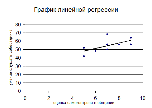 Коэффициент детерминации (r2) свидетельствует о том, что в данной выборке 41% различий значений умения слушать объясняется различиями значений оценки самоконтроля в общении.