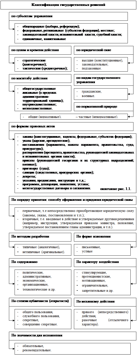 Итак, государственные решения можно классифицировать следующим образом. Более наглядно она представлена на рис. 1.1.