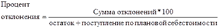 Каждая из них, т.е. плановая себестоимость или договорная цена единицы продукции, разрабатывается организацией самостоятельно. В конце месяца плановая себестоимость должна быть доведена до фактической путем расчета сумм и процентов отклонений по группам готовой продукции. Суммы и проценты отклонений рассчитываются исходя их остатка продукции на начало месяца и ее поступления за месяц. Отклонения показывают экономию или перерасход, допущенные организацией, и поэтому характеризуют результаты ее работы в процессе производства. Отклонения учитываются на тех же счетах, что и готовая продукция, и записываются сторно – экономия или обычной записью – перерасход. Процент отклонений и плановая себестоимость отгруженной продукции позволяют рассчитать ее фактическую себестоимость и остаток на складах на конец месяца.