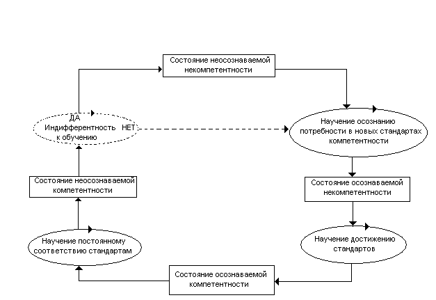 С другой стороны, развитие – это процесс перемещения с одного уровня выполнения деятельности на новый, совсем иной уровень компетентности. О том, что развитие произошло, можно говорить, когда ученик постоянно демонстрирует свою способность выполнять деятельность на новом качественном уровне. Таким образом, развитие предполагает потребность в четких стандартах качества и в точных методах измерения или оценки соответствия этим стандартам. Процесс развития также связан с внутренним состоянием некомпетентности или системой установок учащегося.