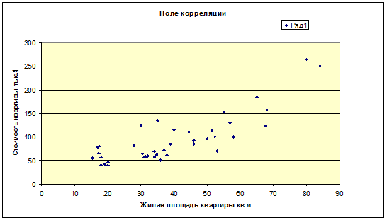 2. Постройте поле корреляции результативного признака и наиболее тесно связанного с ним фактора.