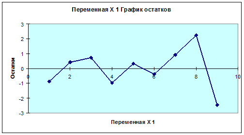 Зададим уровень значимости равной 0,05. По таблицам значений критерия Дарбина-Уотсена для числа n=9 и числа независимых переменных модели k=1 критическое значение d1=0,82 и d2=1,32
