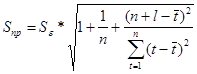 Доверительные интервалы для прогнозных значений рассчитаем по формуле: