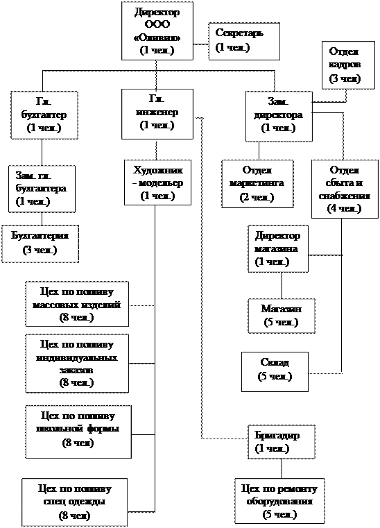 Структура предприятия ООО «Оливия» приведена в Приложении 1.
