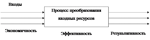 Процесс преобразования (трансформации) оценивается менеджером с позиции производительности, эффективности, соотношением выгоды и сделанных затрат. Выходные результаты позволяют определить, в какой степени достигнута поставленная цель, какова результативность управления. Работа менеджера должна быть результативной, если, в конечном счете цель достигнута. Работа менеджера является эффективной, если цель достигается при наименьшем количестве средств.