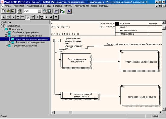 В работе представлены особенности применения инструментальных сред BPWin И ERWin для проведения социологических опросов и, в частности, для проведения переписи населения. Спроектирована система организации этапов моделирования предприятия «Промстальконструкция». Результаты работы могут быть использованы организациями, занимающимися производственной деятельностью.