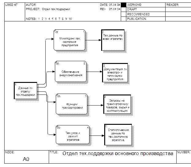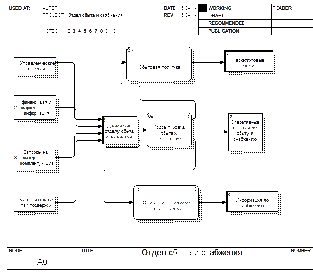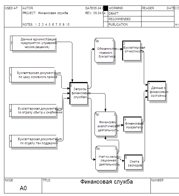 Вторая глава посвящена анализу информационных потоков склада предприятия для последующего моделирования самой информационной системы. Также описаны этапы и цели разработки бизнес-процесса и разработана система функционирования склада с использованием методологии BPwin.