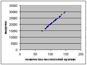 Таким образом, по полученным результатам фирма владелец сети баров может разрабатывать рекламную компанию с учетом полученной взаимосвязи выручки и количеством посетителей мужчин.