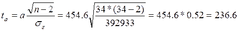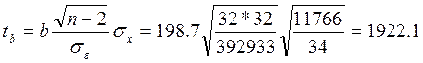 tr > tk следовательно отвергаем нулевую гипотезу о незначимости связи х и у.