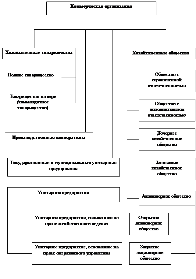 Юридические лица, являющиеся коммерческими организациями, могут создаваться в форме хозяйственных товариществ и обществ, производственных кооперативов, государственных и муниципальных унитарных предприятий.
