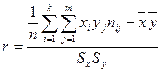 Для вычисления коэффициента корреляции находят выборочные средние и среднеквадратические отклонения переменных Х и Y по формулам: