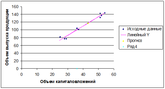 7. Представить графически: фактические и модельные значения Y, точки прогноза.