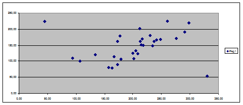 образующие выборку предприятия типичны по значениям изучаемых экономических показателей, но присутствуют 2 аномальных единицы наблюдения которые были исключены из выборки.