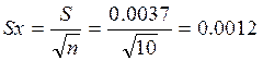 Sx- СКП (СКО) среднего арифметического. Коэффициент t определяется по таблице распределения Стьюдента при различной доверительной вероятности. По таблице при заданном значении вероятности Р=0,8 и n=10, значение t=1,38.