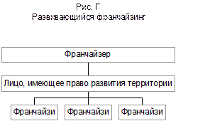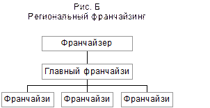 В последние годы классическая модель франчайзинга (рис. А) изменилась в направлении обеспечения франчайзера дополнительными возможностями быстрого развития с наименьшими затратами. Хотя существует много вариантов классического франчайзинга, три из них наиболее часто используются. Это: региональный франчайзинг, суб–франчайзинг, развивающийся франчайзинг дополнительными возможностями быстрого развития с наименьшими затратами. Хотя существует много вариантов классического франчайзинга, три из них наиболее часто используются. Это: региональный франчайзинг; суб–франчайзинг; развивающийся франчайзинг (рис. Б, В, Г). В каждом из этих случаев франчайзи получает все преимущества, которые обычно связаны с франчайзингом: использование торговой марки и логотипа франчайзера, системы его бизнеса, первоначальное обучение, выбор места, поддержка и т. д. Основные отличия их друг от друга заключаются в следующих характеристиках: