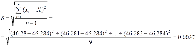 2. Вычислим среднеквадратическая погрешность ряда измерений СКП (синоним СКО - среднеквадратическое отклонение):