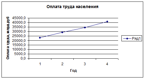 На рис. 1 представлено графическое изображение динамики оплаты труда населения за 4 года.