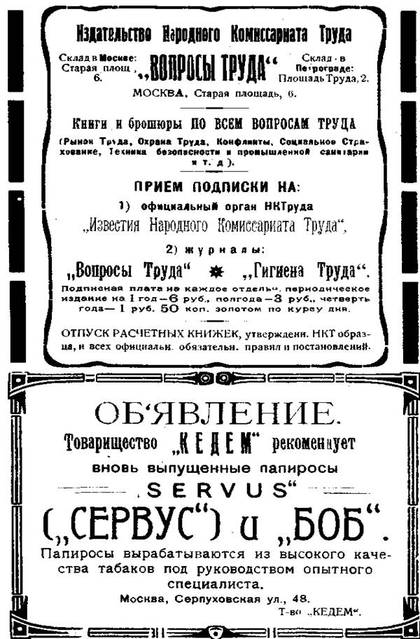 13. Пункт при ф-ке «Пролетарский труд». Врачей—1. Бол. Якиманка, 37.