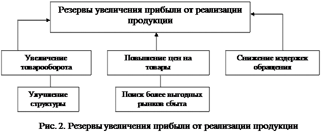 Прибыль от реализации товаров занимает наибольший удельный вес в структуре балансовой прибыли торгового предприятия, поэтому при выявлении основных путей увеличения прибыли торгового предприятия необходимо рассматривать резервы увеличения именно прибыли от реализации.
