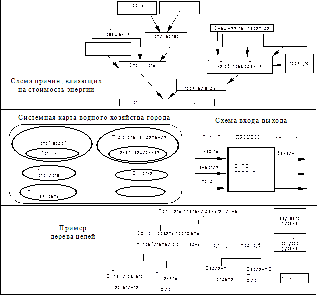 - дерево целей, ограничения, критерии (на шагах Определение целей, ограничений и Формирование критериев);