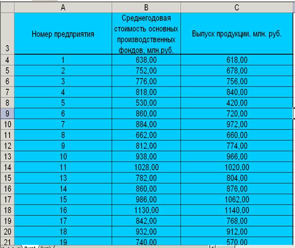 3. Сортировать поÜ заголовок столбца, по которому выполняется сортировка, т.е. Среднегодовая стоимость основных производственных фондов;