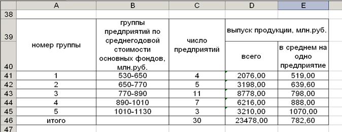 В результате указанных действий в таблице 1б размещаются данные, ранжированные по возрастанию признака Среднегодовая стоимость основных производственных фондов.