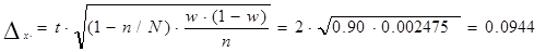 С вероятностью Р=0,954, установим пределы для всей совокупности вкладов населения доли вкладов до 5 тыс. руб.