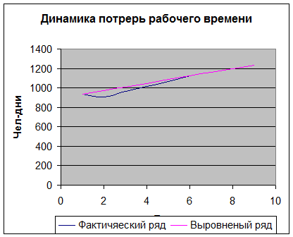 1. Для определения тенденции изменения потерь рабочего времени подберите вид аналитической функции