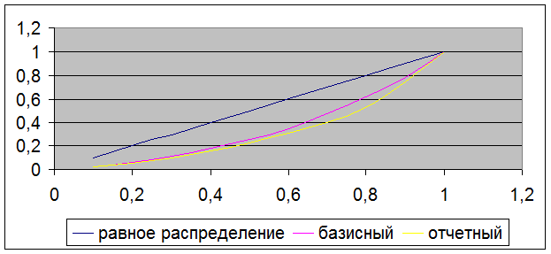 Расслоение населения по уровню дохода за рассматриваемый период возросло, поскольку отклонение кривой Лоренца от линии равномерного распределения изменилась в сторону увеличения площади образованной этой кривой и линией равномерного распределения.