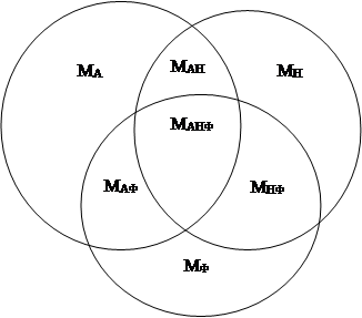 Из диаграммы Эйлера-Вена получаем: МВ = МА + МН + МФ + МАН + МАФ + МНФ + МАНФ=60+50+50+60+70+0+0=290.