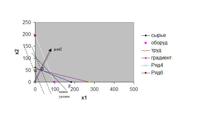 Вектор, компоненты которого являются коэффициентами целевой функции при переменных х1 и х2, называют вектором – градиентом целевой функции и обозначают grad Z.