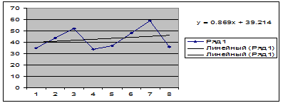 Находим a и b: с помощью программы «мастер диаграмм» построим график с линией тренда и уравнением
