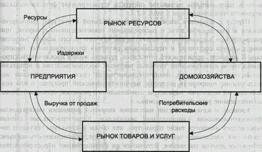 Национальное хозяйство – исторически сложившаяся в определенных территориальных границах саморегулирующаяся система общественного воспроизводства. Термин «национальное хозяйство» употребляется и как синоним экономики страны (национальной экономики). В результате макроэкономического агрегирования функционирование национальной экономики представляется в виде хозяйственной деятельности четырех субъектов (государство, предприниматели, домашние хозяйства, зарубежные партнеры), взаимодействующих друг с другом на четырех агрегированных рынках: товаров и услуг, денег, труда, капитала (рис. 1).
