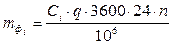 где: Сi – концентрация i-го вещества в сточных водах предприятий, мг/л; q - расход сточных вод, м3/с; n – работа очистных сооружений, сут/год (приблизительно 320 сут/год).