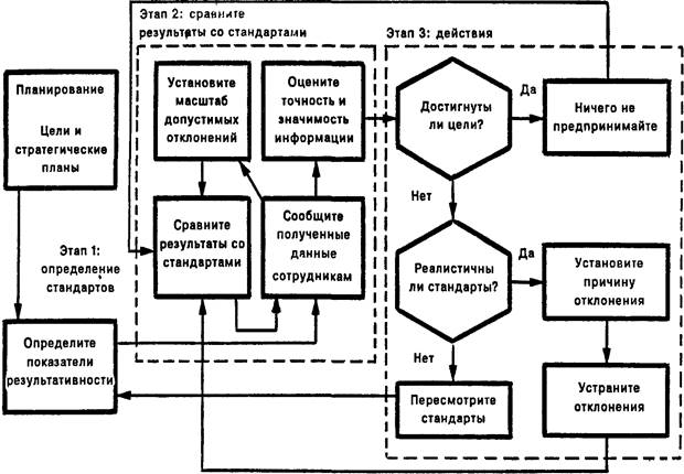 Первый этап процесса контроля – это установка стандартов, т.е. конкретных, поддающихся измерению целей, имеющих временные границы. Для управления необходимы стандарты в форме показателей результативности объекта управления для всех его ключевых областей, которые определяются при планировании.