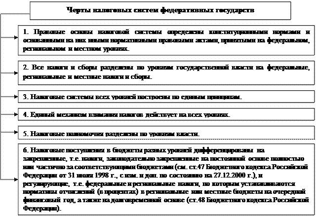 Можно выделить следующие черты налоговых систем федеративных государств[1]. (рис.1.)