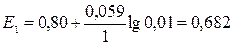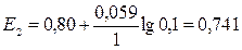 где: Е0 – стандартный электродный потенциал; n – число электронов, принимающих участие в процессе; С – концентрация гидратированных ионов металла в растворе. Е0 для серебра составляет +0,80 В. Определим электродные потенциалы металла при данных в условии концентрациях: