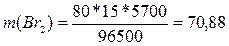 где: m – масса вещества, окисленного или восстановленного на электродах; Э – эквивалентная масса вещества; I – сила тока, А; t – продолжительность электролиза, с. Эквивалентная масса водорода равна 2 / 2 = 1 г/моль, брома – 160 / 2 = 80 г/моль; t = 5700 (1 ч 35 мин = 5700 с), подставляя данные значения в формулу, получим: