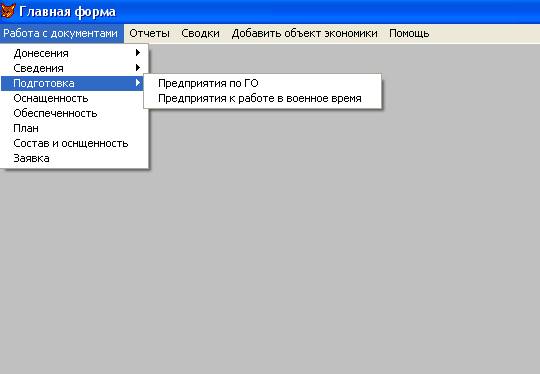 Рис. 10. Окно и меню в режиме работы сотрудника