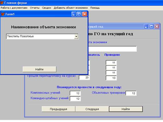 · После можно выбирать, нужный документ в пункте меню «Работа с документами». Выбрав, откроется форма заполнения данных. Где при помощи кнопки «Найти» можно выбрать предприятие или учебное заведение, по которому нужно работать с информацией (Рис. 4)