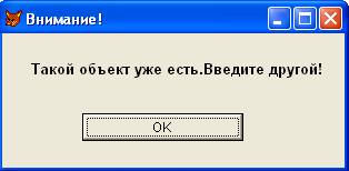Сообщение представленное на рисунке 13, появляется, когда вы добавляете новый объект, а с таким именем уже есть в базе данных.