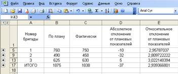 Относительно отклонение от плановых показателей |