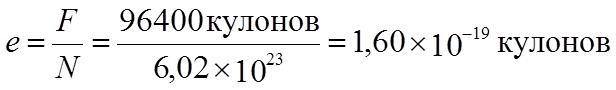 заряд одного иона одновалентного вещества – элементарный электрический заряд – заряд одного (!)
