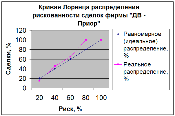 Построить кривую Лоренца. Оценить уровень рискованности деятельности фирмы «ДВ – Приор».